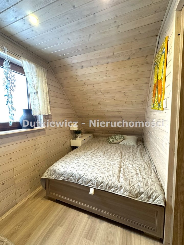 Na parterze domek oferuje funkcjonalny układ: kuchnia, łazienka oraz pokój dzienny, a na piętrze znajdują się dwie niezależne sypialnie. Całość posadowiona jest na ogrodzonej działce o łącznej powierzchni 252 m² (118 m² + 134 m²). Działka, z dostępem do drogi publicznej, jest doskonale zagospodarowana, a na jej terenie pozostają udogodnienia takie jak wędzarnia, grill oraz praktyczne skrzynie Keter.