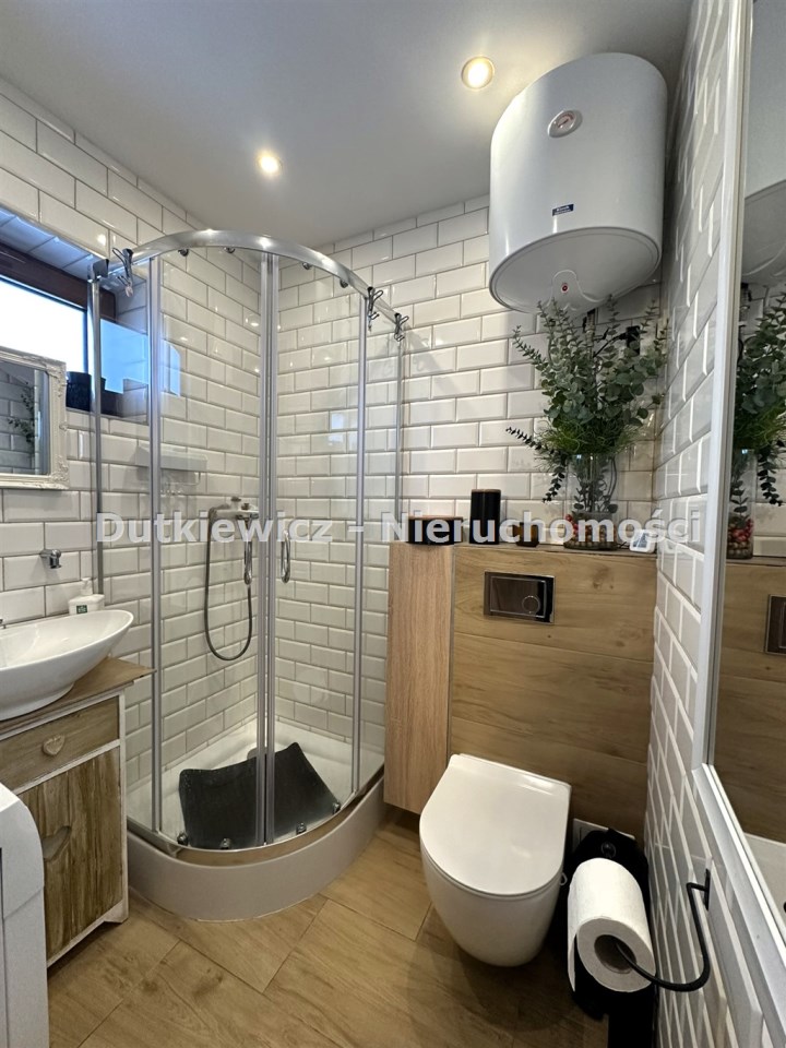 Na parterze domek oferuje funkcjonalny układ: kuchnia, łazienka oraz pokój dzienny, a na piętrze znajdują się dwie niezależne sypialnie. Całość posadowiona jest na ogrodzonej działce o łącznej powierzchni 252 m² (118 m² + 134 m²). Działka, z dostępem do drogi publicznej, jest doskonale zagospodarowana, a na jej terenie pozostają udogodnienia takie jak wędzarnia, grill oraz praktyczne skrzynie Keter.