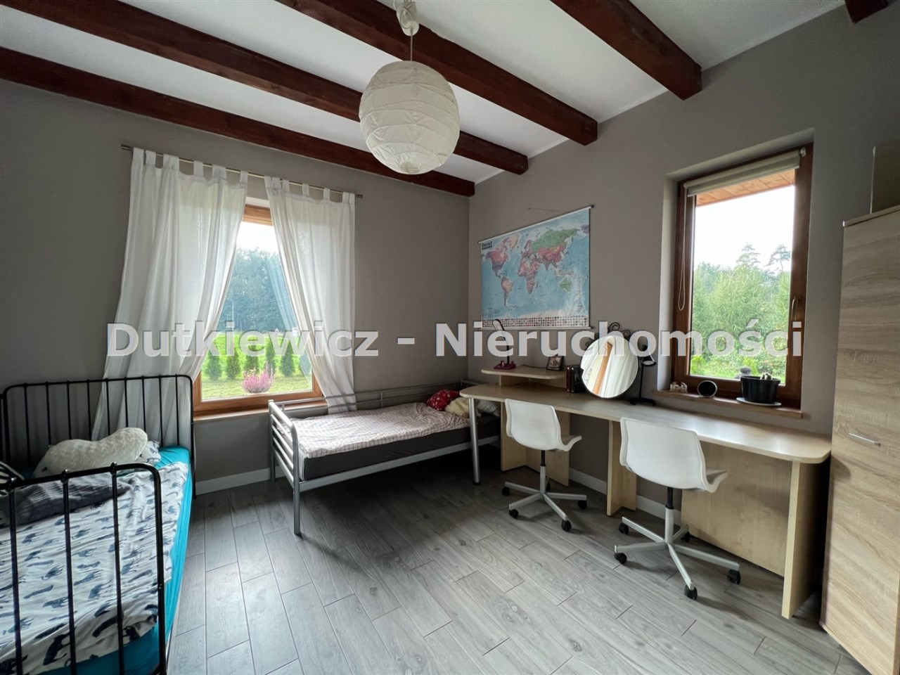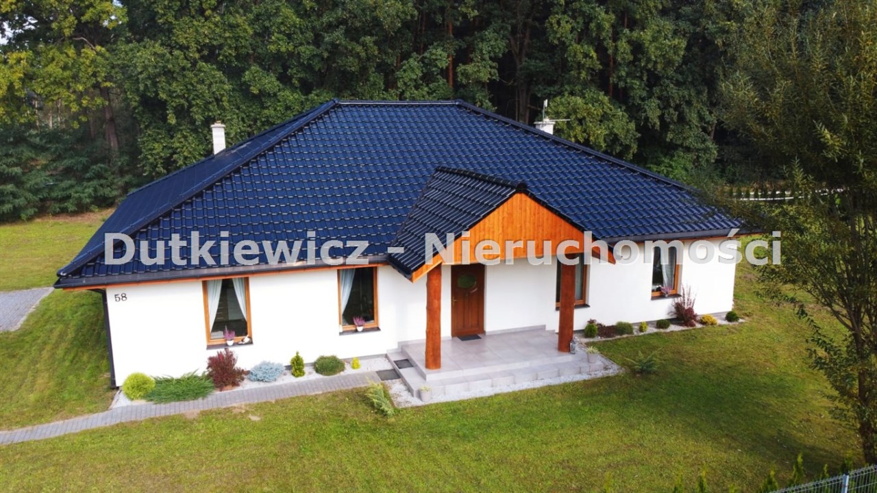 Dom wybudowany od podstaw z bardzo dobrych materiałów. W domu zastosowano najlepsze materiały izolacyjne… Dla przykładu okna od zachodu (lasu) są 5 komorowe, 3 szybowe, oraz ocieplenie ścian styropianem 20 cm. Dom posiada własną ekologiczną oczyszczalnie przydomową. W całym domu ogrzewanie podłogowe, a ogrzewanie wody dodatkowo wspomaga pompa ciepłą. Brak grzejników, tak aby zminimalizować straty energii. Wybudowany komin w salonie umożliwia w przyszłości zamontowanie kominka. Ponadto rolety elektryczne od zachodu zapewniają dodatkową osłonę przed wiatrem jak i słońcem.. Nieruchomość wykończona w bardzo wysokim standardzie wg projektu. Przyjemny i użyteczny projekt zapewnia komfortowe i wysokie przestrzenie w domu...