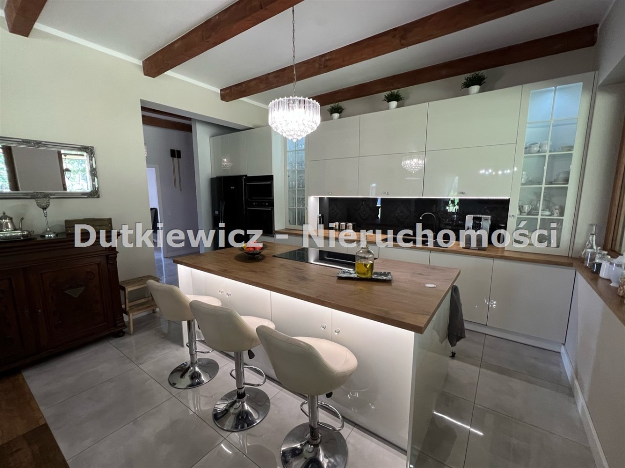 | Wyposażenie kuchni | krzesła, lodówko-zamrażalka,, meble kuchenne na wymiar, płyta indukcyjna, zlewozmywak z baterią |