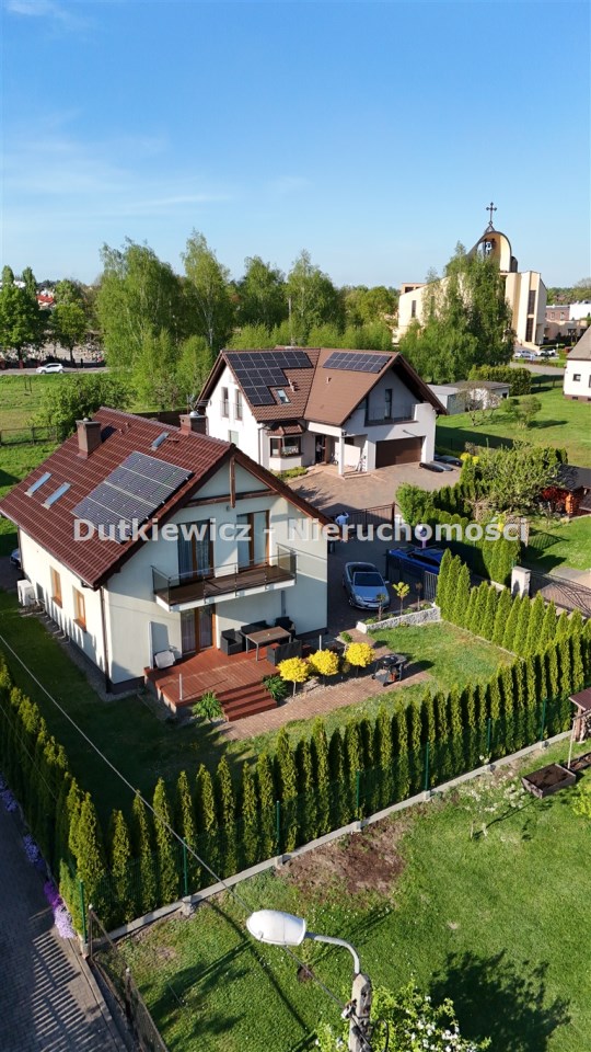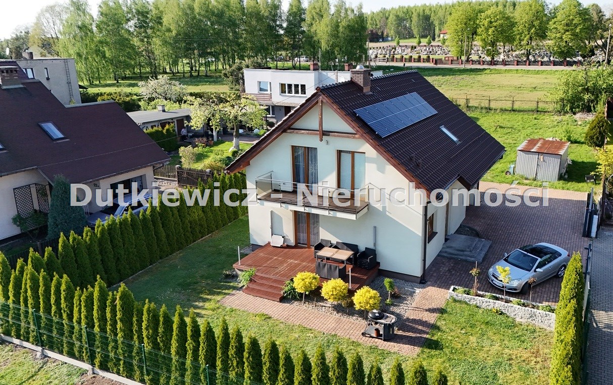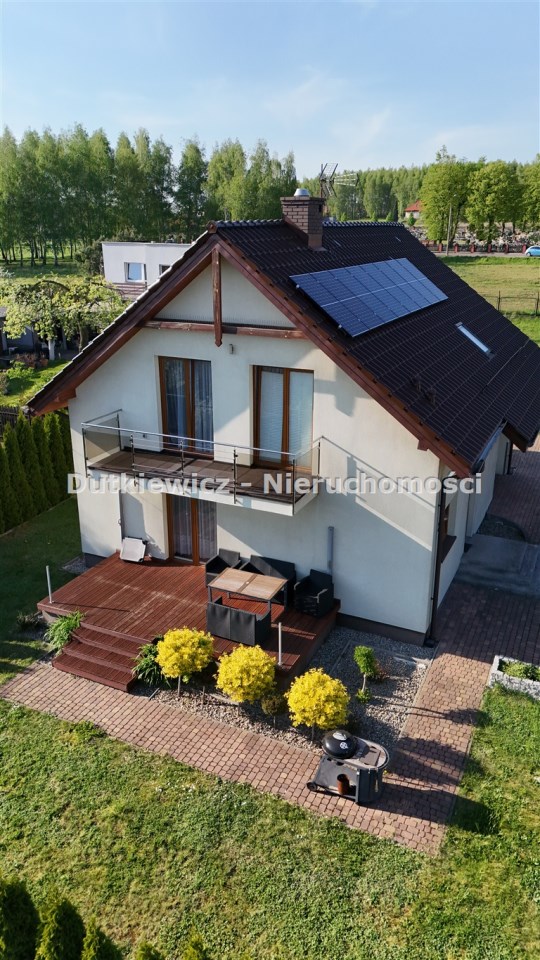 Innowacyjne rozwiązania energetyczne: Ogrzewanie pompą ciepła z 2023 roku i panele słoneczne o mocy 6,7 KWP to nie tylko ekologiczne wybory, ale również gwarancja oszczędności i samowystarczalności energetycznej. Dodatkowy wybudowany komin w salonie z rozprowadzeniem do każdego pokoju umożliwi w przyszłości zamontowanie kominka. Twoje nowe miejsce będzie nie tylko domem, ale również szlachetnym obrońcą środowiska.