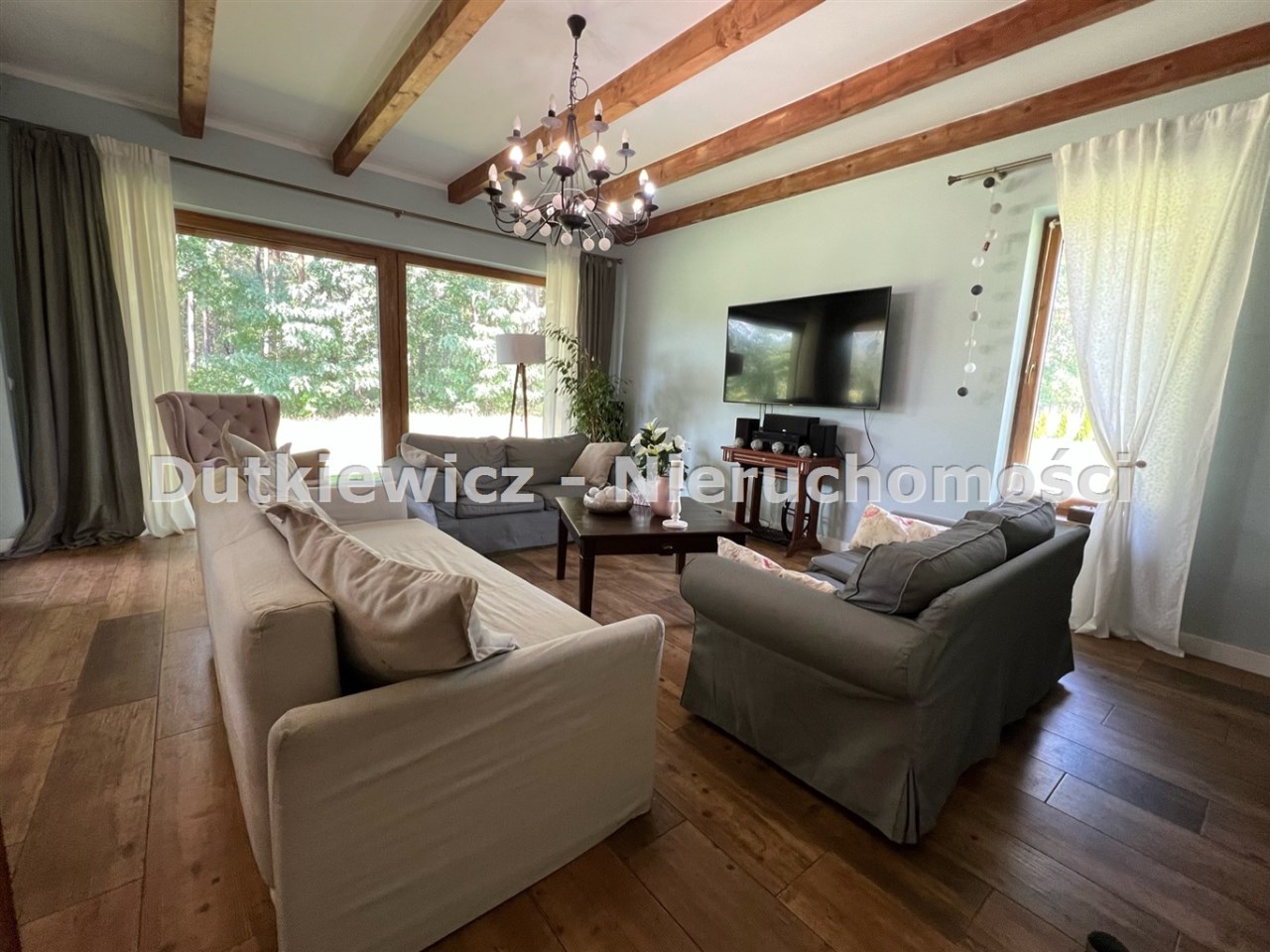 Ofertą sprzedaży jest dom parterowy o powierzchni 194 m2 z dodatkowym użytkowym poddaszem. Nieruchomość znajduje się w Brzeźcach, a usytuowany jest wśród lasów i łąk na działce o powierzchni 2158 m2. Wokół nowe zabudowy jednorodzinne. Dojazd do nieruchomości całkowicie utwardzony.