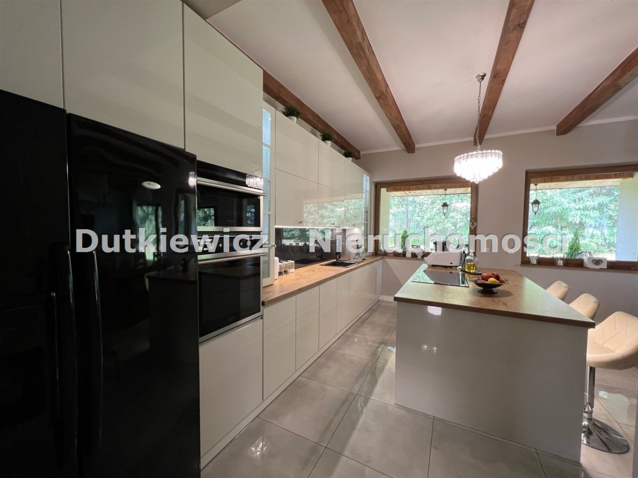 | Wyposażenie kuchni | krzesła, lodówko-zamrażalka,, meble kuchenne na wymiar, płyta indukcyjna, zlewozmywak z baterią |