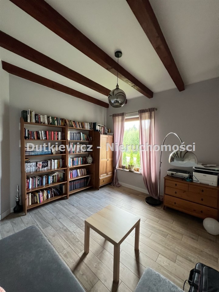 Dom wybudowany od podstaw z bardzo dobrych materiałów. W domu zastosowano najlepsze materiały izolacyjne… Dla przykładu okna od zachodu (lasu) są 5 komorowe, 3 szybowe, oraz ocieplenie ścian styropianem 20 cm. Dom posiada własną ekologiczną oczyszczalnie przydomową. W całym domu ogrzewanie podłogowe, a ogrzewanie wody dodatkowo wspomaga pompa ciepłą. Brak grzejników, tak aby zminimalizować straty energii. Wybudowany komin w salonie umożliwia w przyszłości zamontowanie kominka. Ponadto rolety elektryczne od zachodu zapewniają dodatkową osłonę przed wiatrem jak i słońcem.. Nieruchomość wykończona w bardzo wysokim standardzie wg projektu. Przyjemny i użyteczny projekt zapewnia komfortowe i wysokie przestrzenie w domu...